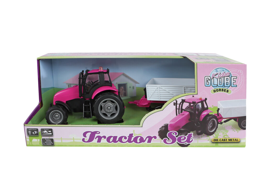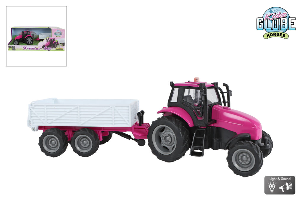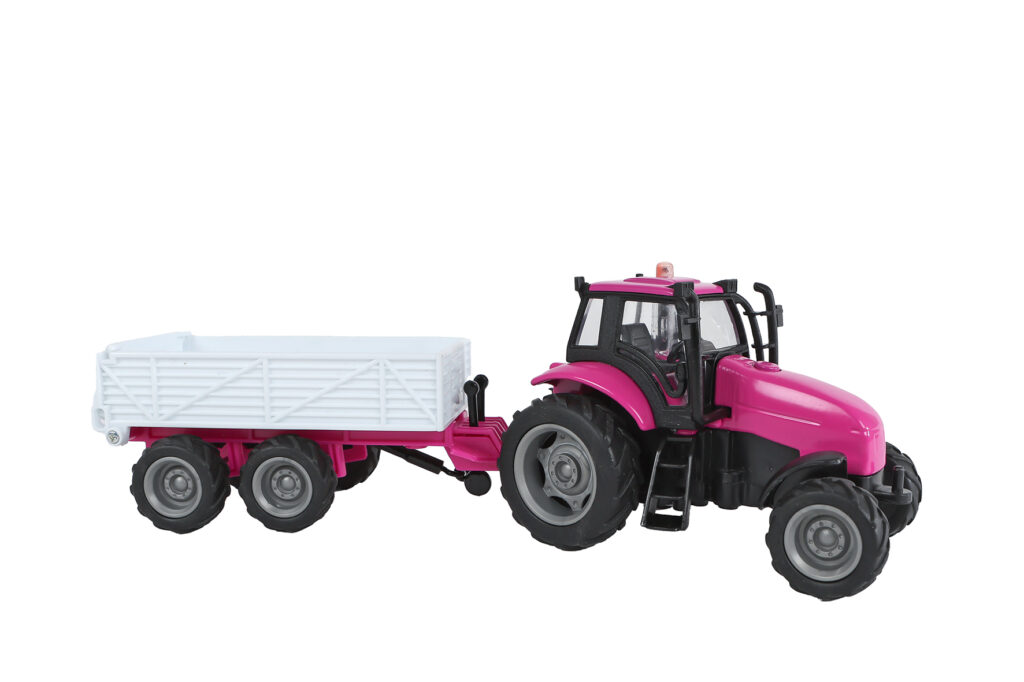 Tractor met aanhanger roze
